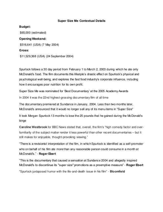 Supersize Me Essay Supersize Me Essay Redonda Jpg International